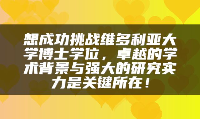维多利亚大学在学术研究领域声誉卓著,其博士学位含金量极高,吸引着全球优秀学者竞相申请。若想成功挑战该校博士学位,卓越的学术背景与强大的研究实力是关键所在。 卓越学术背景的夯实 学历基...