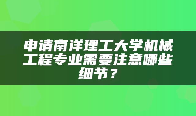 在科技飞速发展的当下,机械工程作为一门核心学科,推动着众多领域的创新与进步。南洋理工大学(NanyangTechnologicalUniversity,简称NTU)凭借其卓越的学术声誉、前沿...